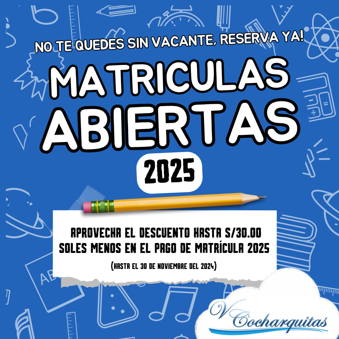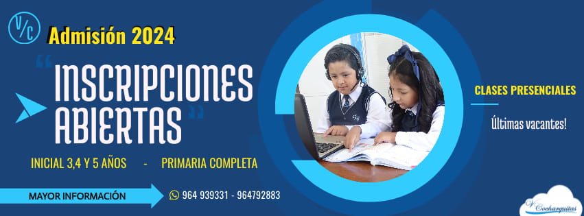 ¿Buscas el mejor colegio para que tu hij@ crezca feliz, aprenda con pasión y se prepare para el futuro? ¡Has llegado al lugar correcto! En la I.E. Virgencita de Cocharcas, no solo formamos excelentes estudiantes, sino grandes personas, con valores, corazón y todas las herramientas para brillar.